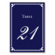 Create your own navy and white wedding table number cards in a classic calligraphy style paired with a lovely all caps style modern font.