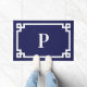 Navy Blue and White Greek Key Frame Monogram Doormat