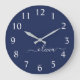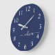 Navy Blue and White Modern Monogram Large Clock