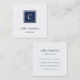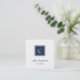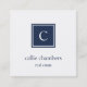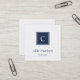 Chic and professional navy blue and white square business card design features a modern square element holding your single initial monogram, with your name and title or business name beneath in contemporary lowercase serif lettering. Personalise the reverse side with your contact details in matching navy. A modern choice for any occupation; sample shown for realtors or real estate agents.