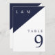 Navy Blue And White Monogram Wedding Table Number