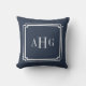Navy Blue and White Notched Corner Custom Monogram Cushion