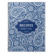 Elegant navy-blue and white vintage paisley pattern, customisable template mini binder template.