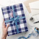 A wrapping paper designed with a navy blue and white plaid pattern in large size. Customise the white background among other options.