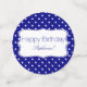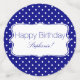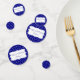 Navy blue and white polka dot pattern birthday party confetti. The design features a navy blue polka dot pattern on white and a white shape in the middle with your custom text.