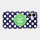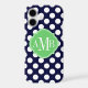 © 2012 Socialite Designs. Our elegant polka-dot pattern in dark blue and white iPhone case has a banner for your monogram, initials or name. Just replace our existing template text with your own.