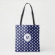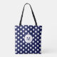 Navy Blue and White Polka Dot Pattern Monogram Tote Bag