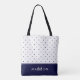 Navy Blue and White Polka Dots with Monogram Tote Bag