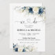 Navy Blue and White Roses Wedding Ceremony Invitation