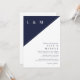 This navy blue and white minimalist, elegant wedding invitation can be personalised with your information in modern typography and your wedding website address QR code on the reverse. Designed by Thisisnotme©
