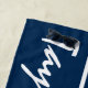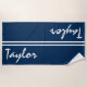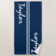 Navy Blue and White with Custom Name or other Text. The 2 centre white stripes highlight this Beach Towel.
