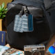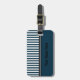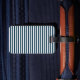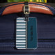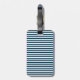 Personalised navy blue and white striped luggage tag. Personalise with your own text.