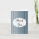 Navy blue and white striped note card / Thank You card. The sample text says, "Thank you," but is completely customisable. Change the text size, font, colour, or message to suit your needs. Add a message inside, or leave blank to allow for a handwritten message. See the matching stickers in our collection.
