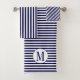 Navy blue and white stripes and monogram bath towel set