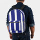 Navy blue and white stripes printed backpack