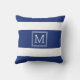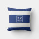 Navy Blue and White Stripes Simple Monogram Custom Cushion