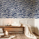 Transform your space with the bold energy of this zebra stripe wallpaper. Featuring a classic navy blue and white stripe pattern, this design adds a touch of modern chic and drama to any room. Perfect for creating a statement wall in living rooms, bedrooms, or offices.