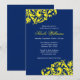 An elegant navy blue and yellow bridal shower invitation. Featuring a classic design of navy blue with yellow flourish swirls. Easily personalise for your event.