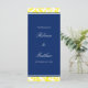 An elegant yellow and navy blue wedding program. Featuring a modern flourish swirl damask pattern. Easily personalise for your event.