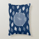 Navy Blue Antique Leaves Pattern Monogram Decorative Cushion
