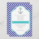 Navy blue, aqua anchor & stripes nautical wedding invitation