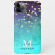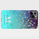 Navy blue aqua gold sparkle glitter monogram iPhone case