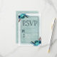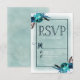 Navy Blue & Aqua Watercolor Floral Wedding RSVP Card