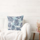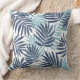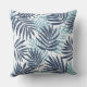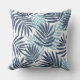 Navy Blue Aqua & White Palm Leaf Throw Pillow