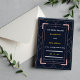 Navy Blue Art Deco Rose Gold Geometric Wedding Invitation