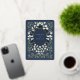 This sophisticated wedding invitation features a luxurious deep navy blue background, adorned with an intricate Art Nouveau inspired gold foil motif. The elegant design is complemented by a symphony of floral elements in shades of cream and gold, creating a harmonious frame around the central oval-shaped text area. The botanical theme, a hallmark of Art Nouveau style, symbolises growth and unity, making it an ideal choice for couples looking to add a touch of timeless beauty to their wedding stationery. The use of gold foil adds a touch of opulence, perfect for an event that celebrates love and commitment. The invitation strikes a delicate balance between classic charm and modern elegance, suitable for a range of wedding themes from traditional to contemporary.