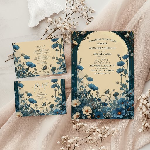 Set the stage for your elegant celebration with our Navy Blue Art Nouveau Wedding Invitation. This stunning invitation features intricate Art Nouveau-inspired designs, rich navy blue hues, and delicate floral motifs that beautifully encapsulate the charm and sophistication of this artistic movement. Perfect for couples looking to create a timeless and romantic atmosphere for their wedding.