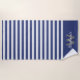 Personalise a navy blue and white striped beach towel with a monogram. Click the custom button to change initials and name.