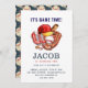 Navy Blue Baseball Kids Birthday Party Watercolor Invitation