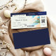 Set the tone for your seaside celebration with this elegant nay blue beach-themed boarding pass Save the Date. Designed to look like a real travel ticket, it’s the perfect way to announce your destination wedding in style. Soft blue tones blend beautifully with coastal details, evoking the calm and romance of an ocean breeze. Personalise with your names, wedding date, and location for a unique keepsake your guests will love.