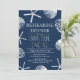 Navy Blue Beach Seashells Wedding Rehearsal Dinner Invitation