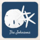 Navy Blue Beach Starfish Sand Dollar Custom Square Paper Coaster