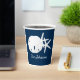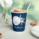 Perfect for beach theme family parties, weddings, birthdays, retirements and other events, these personalised coastal paper cups feature a white sand dollar and 2 starfish on a navy blue background. Find matching paper plates, napkins, and coasters in the collection.