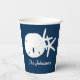 Navy Blue Beach Starfish Sand Dollar Personalised Paper Cups