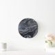 Navy Blue Black Marble Agate Silver Glitter Glam Round Clock