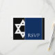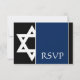 Modern navy blue and black Star of David Bar Mitzvah RSVP response card.