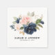 Navy Blue Blue Blush Pink Rose Botanical Napkin