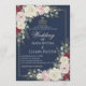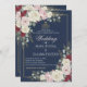 Navy Blue Blush Burgundy Floral Gold Frame Wedding Invitation