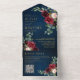 Navy Blue Blush Burgundy Gold Botanical Wedding All In One Invitation