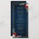 Dark navy blue burgundy floral geometric wedding menu featuring elegant bouquet of navy blue, royal blue , white , blush, burgundy, marsala rose and sage green eucalyptus leaves and elegant gold glitter geometric neutral frame. Please contact me for any help in customisation or if you need any other product with this design.