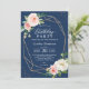 Navy Blue Blush Floral Adult Birthday Party Invitation