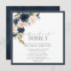 Navy Blue & Blush Floral Brunch & Bubbly Shower Invitation
