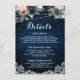 Navy Blue Blush Floral Rustic String Light Details Enclosure Card