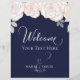 Navy Blue Blush Floral Wedding Welcome Sign Flyer