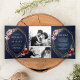Navy Blue Blush Pink Burgundy Floral Wedding Tri-Fold Invitation
