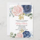 Navy blue blush pink floral 21st birthday invitation